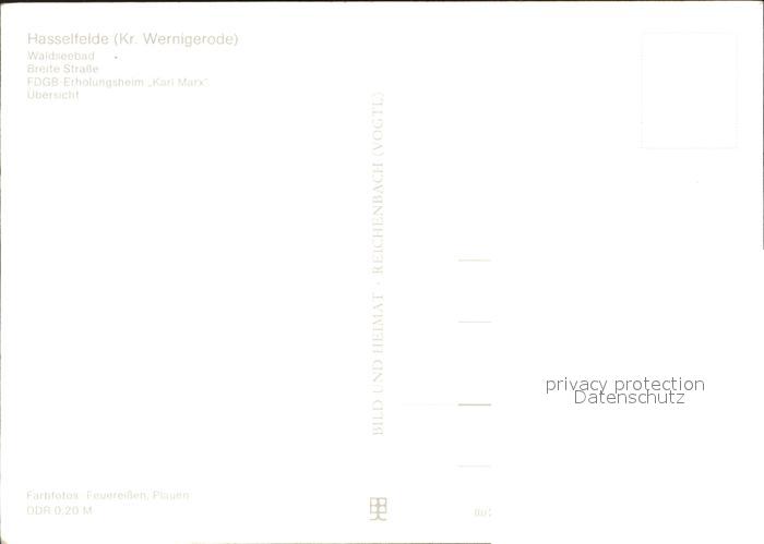 72354927 Hasselfelde Waldseebad Breite Strasse FDGB Erholungsheim Karl Marx postalisch nicht gelaufen Erhaltung siehe scans KatCode: 11110015085150