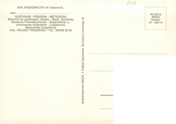73887468 Hassenroth Hoechst Odenwald Gasthaus Pension Metzgerei Friedrich Ortsansicht postalisch nicht gelaufen Erhaltung siehe scans [FriedD77] KatCode: 11110006437009