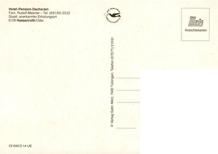 73884186 Hassenroth Hoechst Odenwald Hotel Cafe Dachsrain Freibad Weiher Terrasse Grillplatz Gartenschach postalisch nicht gelaufen Erhaltung siehe scans [FriedD77] KatCode: 11110006437009