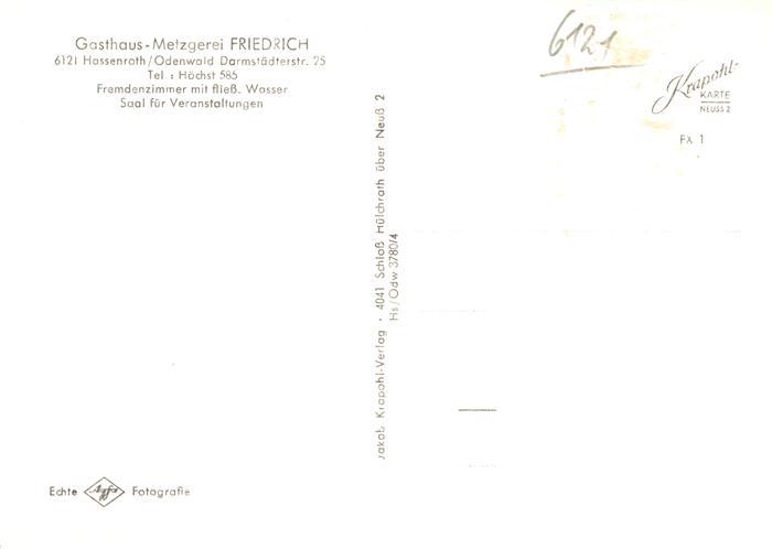 73873464 Hassenroth Hoechst Odenwald Panorama mit Gasthaus Metzgerei Friedrich postalisch nicht gelaufen Erhaltung siehe scans [WerneD78] KatCode: 11110006437009