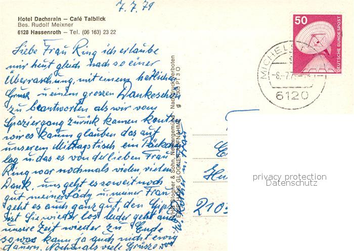73087742 alte Postkarte Hassenroth Hotel Dachsran Cafe Talblick postalisch gelaufen Erhaltung siehe scans [KathaD81] KatCode: 11110006437009
