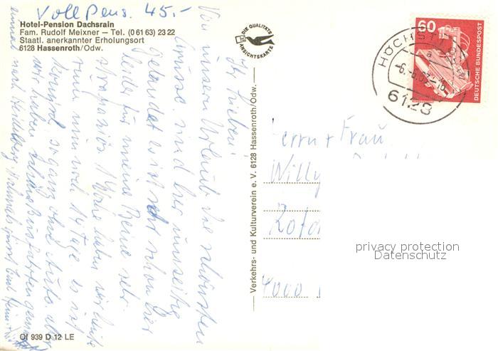 73725920 alte Postkarte Hassenroth Hotel Pension Dachsrain Minigolf Swimming Pool postalisch gelaufen Erhaltung siehe scans [FriedD77] KatCode: 11110006437009