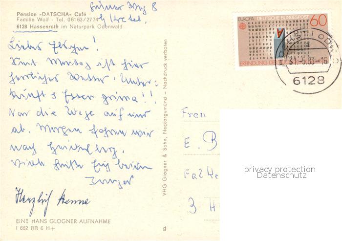 73739354 alte Postkarte Hassenroth Pension Datscha Cafe Gastraeume Panorama postalisch gelaufen Erhaltung siehe scans [WerneD78] KatCode: 11110006437009