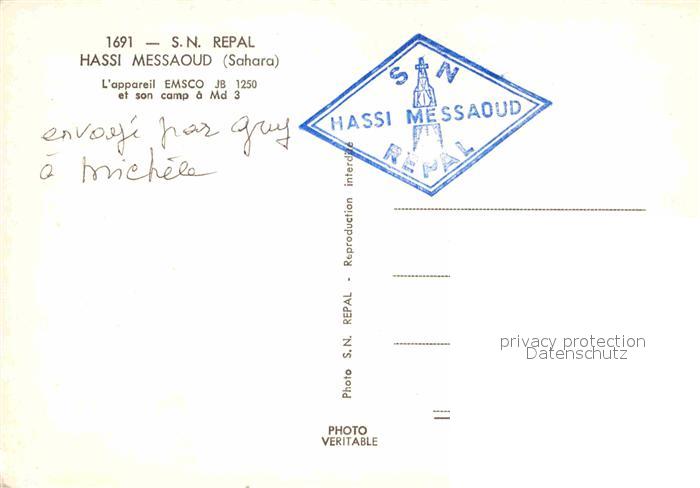 12731809 Hassi Messaoud Appareil EMSCO et son camp a Md 3 postalisch nicht gelaufen Erhaltung siehe scans [WerneD78] Wern Katcode 18000