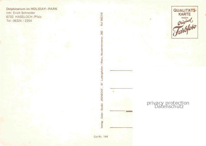 74006085 Hassloch Pfalz Delphinarium Holiday Park Freizeit- und Unterhaltungspark postalisch nicht gelaufen Erhaltung siehe scans [FriedD77] KatCode: 11110007332025