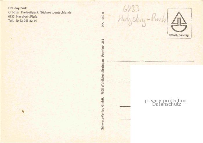 74006121 Hassloch Pfalz Holiday-Park Freizeit- und Unterhaltungspark postalisch nicht gelaufen Erhaltung siehe scans [FriedD77] KatCode: 11110007332025