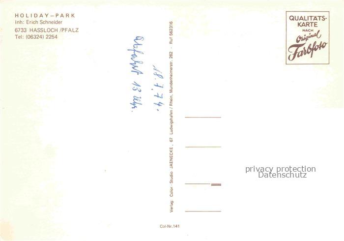 74005845 Hassloch Pfalz Holiday Park Freizeitpark postalisch nicht gelaufen Erhaltung siehe scans [FriedD77] KatCode: 11110007332025
