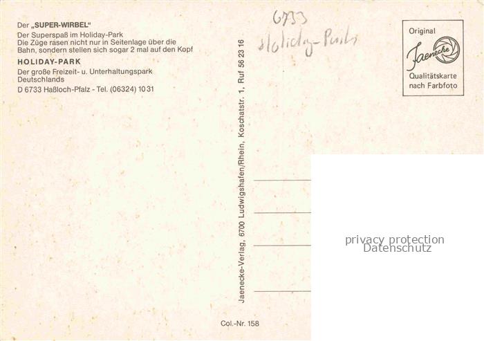 74005840 Hassloch Pfalz Holiday Park Freizeitpark Der Super-Wirbel postalisch nicht gelaufen Erhaltung siehe scans [FriedD77] KatCode: 11110007332025