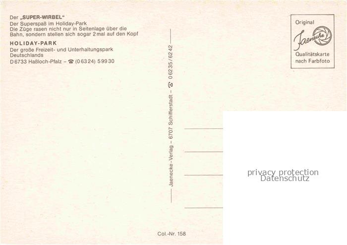 74005841 Hassloch Pfalz Holiday Park Freizeitpark Der Super-Wirbel postalisch nicht gelaufen Erhaltung siehe scans [FriedD77] KatCode: 11110007332025