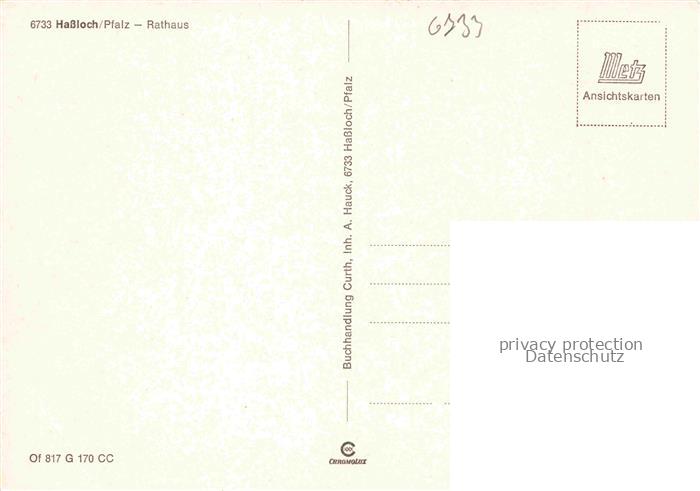 74006089 Hassloch Pfalz Rathaus postalisch nicht gelaufen Erhaltung siehe scans [FriedD77] KatCode: 11110007332025