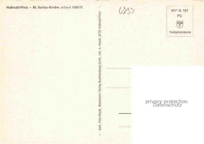 74006092 Hassloch Pfalz St. Gallus Kirche postalisch nicht gelaufen Erhaltung siehe scans [FriedD77] KatCode: 11110007332025
