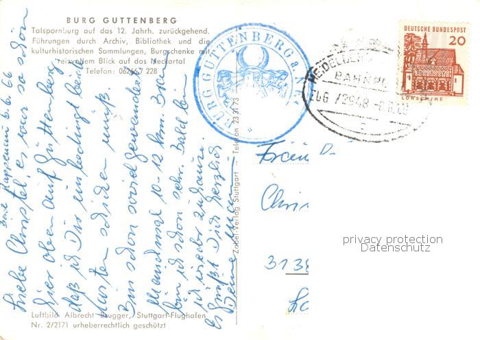 73758994 alte Postkarte Hassmersheim Burg Guttenberg Fliegeraufnahme postalisch gelaufen Bahnpost Erhaltung siehe scans [WerneD78] KatCode: 11110008225033