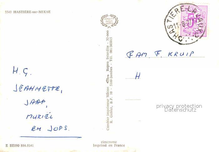 72908303 carte postale Hastiere Meuse Partie am Wasser postalisch gelaufen Erhaltung siehe scans [LiesaD40] KatCode: 11070091010424