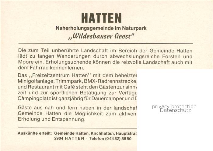 73727231 Hatten Oldenburg Freizeitzentrum Kinderspielplatz Schwimmbad Grillplatz Mutter und Kind Camping Restaurant postalisch nicht gelaufen Werbekarte (keine Postkarte) Erhaltung siehe scans [WerneD78] KatCode: 11110003458009