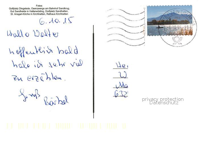 73206624 alte Postkarte Hatten Oldenburg Golfplatz Dingstede Osenzwerge Bahnhof Sandkrug Gut Sandheide postalisch gelaufen Erhaltung siehe scans [KathaD81] KatCode: 11110003458009