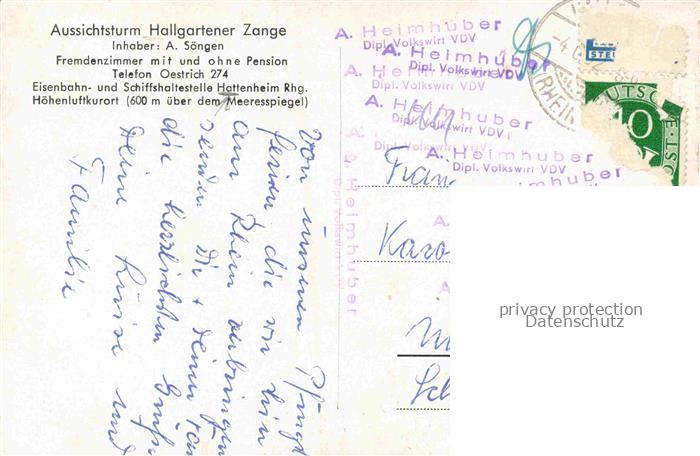 74150460 alte Postkarte Hattenheim Rheingau Eltville Hessen Aussichtsturm Hallgartener Zange postalisch gelaufen Erhaltung siehe scans [FriedD77] KatCode: 11110006439003