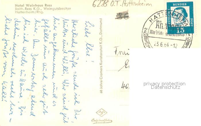 73706477 alte Postkarte Hattenheim Rheingau Hotel Weinhaus Ress postalisch gelaufen Erhaltung siehe scans [WerneD78] KatCode: 11110006439003
