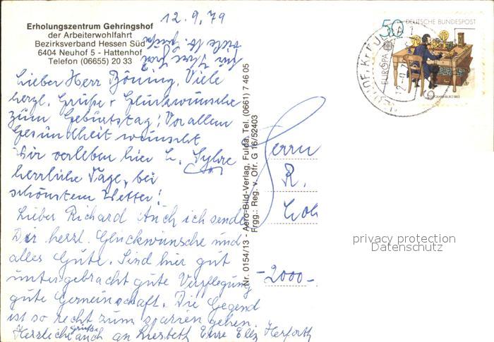 72022476 alte Postkarte Hattenhof Fliegeraufnahme Erholungszentrum Gehringshof postalisch gelaufen KatCode: 11110006631018