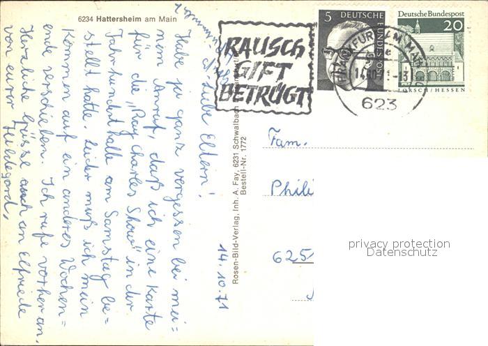 72095970 alte Postkarte Hattersheim Main Blick vom Eisernen Steg postalisch gelaufen Erhaltung siehe scans KatCode: 11110006436005
