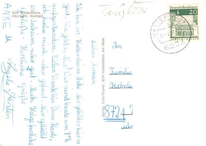 73887085 alte Postkarte Hattersheim Main Teilansicht Nordteil postalisch gelaufen Erhaltung siehe scans [FriedD77] KatCode: 11110006436005