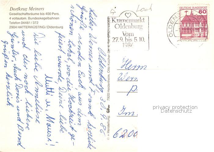 73269328 alte Postkarte Hatterwuesting Dorfkrug Restaurant Saal Kegelbahn postalisch gelaufen Erhaltung siehe scans [FriedD77] KatCode: 11110003458009
