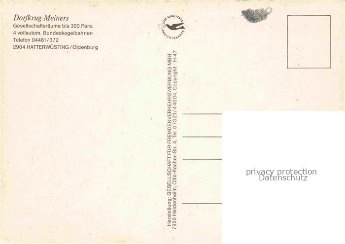 74152251 Hatterwuesting Hatten Oldenburg Niedersachsen Dorfkrug Meiners Speisesaal Kegelbahn Gastraum postalisch nicht gelaufen Erhaltung siehe scans [WerneD78] KatCode: 11110003458009