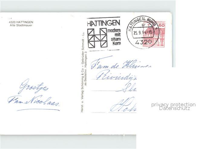 72259122 alte Postkarte Hattingen Ruhr An der Stadtmauer postalisch gelaufen Erhaltung siehe scans KatCode: 11110005954016