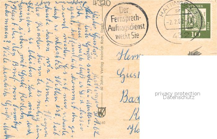 73701881 alte Postkarte Hattingen Ruhr Bahnhof Untermarkt Ruhrbruecke Blick von der Schulenburg postalisch gelaufen Erhaltung siehe scans [LiesaD40] KatCode: 11110005954016
