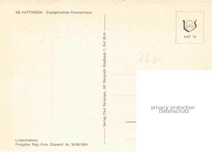 74022608 Hattingen Ruhr Evangelisches Krankenhaus postalisch nicht gelaufen Fliegeraufnahme Erhaltung siehe scans [FriedD77] KatCode: 11110005954016