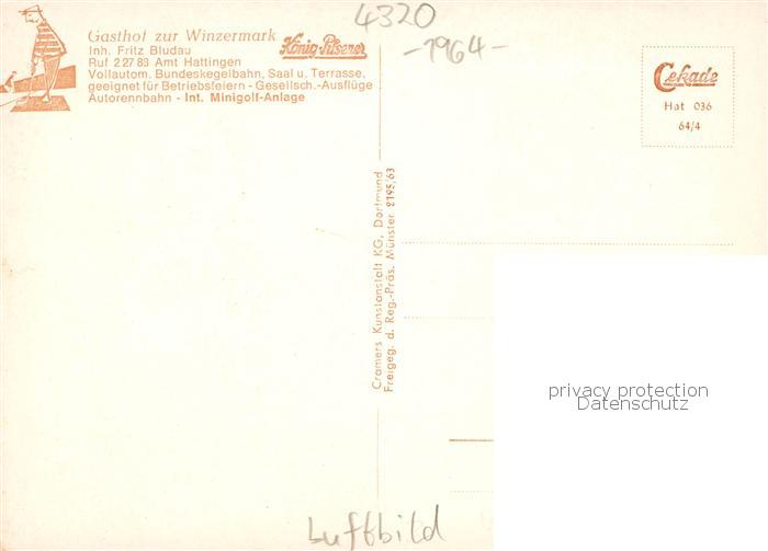 73864999 Hattingen Ruhr Gasthof zur Winzermark Fliegeraufnahme postalisch nicht gelaufen Erhaltung siehe scans [WerneD78] KatCode: 11110005954016