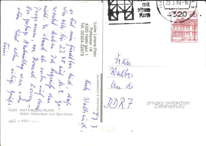 71993350 alte Postkarte Hattingen Ruhr Hallenbad Sporthalle postalisch gelaufen Erhaltung siehe scans KatCode: 11110005954016
