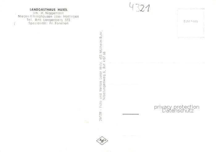 73702550 Hattingen Ruhr Landgasthaus Huxel in Nieder-Efringhausen postalisch nicht gelaufen Erhaltung siehe scans [LiesaD40] KatCode: 11110005954016