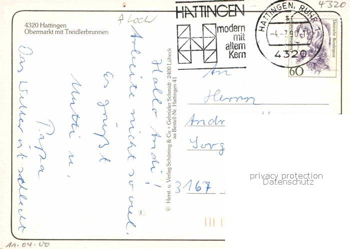 72912180 alte Postkarte Hattingen Ruhr Obermarkt mit Treidlerbrunnen postalisch gelaufen Erhaltung siehe scans [LiesaD40] KatCode: 11110005954016