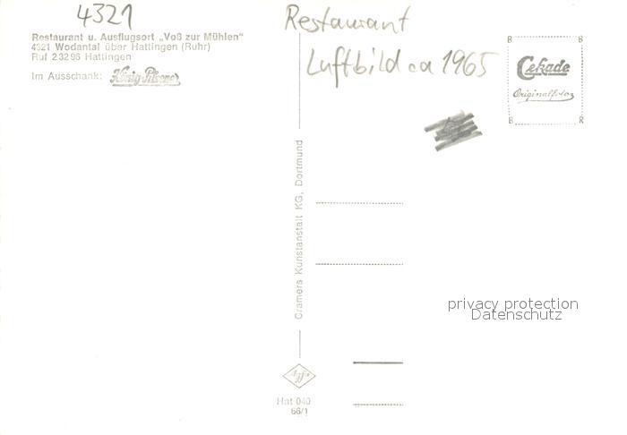73702546 Hattingen Ruhr Restaurant und Ausflugsort Voss zur Muehlen im Wodantal postalisch nicht gelaufen Erhaltung siehe scans [LiesaD40] KatCode: 11110005954016