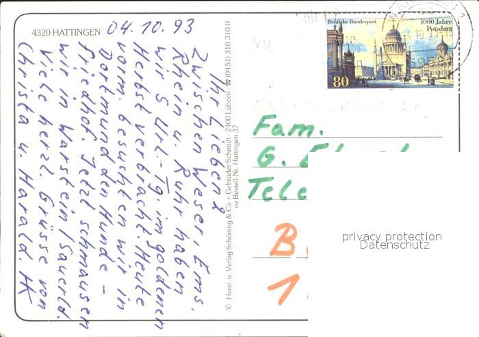 72225929 alte Postkarte Hattingen Ruhr Untermarkt Obermarkt Wasserschloss Kemnade Rathaus Stadtmauer Haldenplatz See postalisch gelaufen Erhaltung siehe scans KatCode: 11110005954016