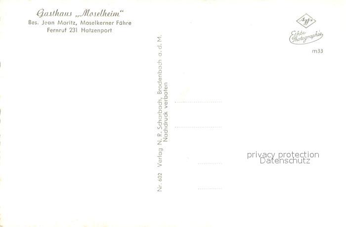73669916 Hatzenport Druidenstein bei Moselkern Gasthaus Moselheim postalisch nicht gelaufen Erhaltung siehe scans [WerneD78] KatCode: 11110007137208