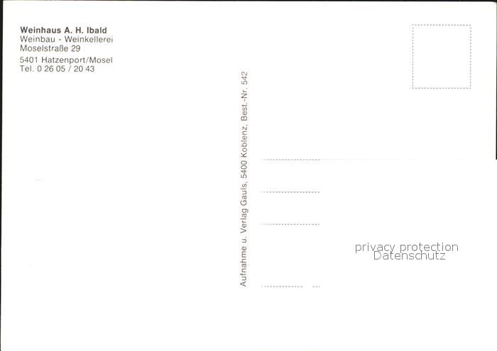 Hatzenport Weinhaus A. H. Ibald postalisch nicht gelaufen Erhaltung siehe scans