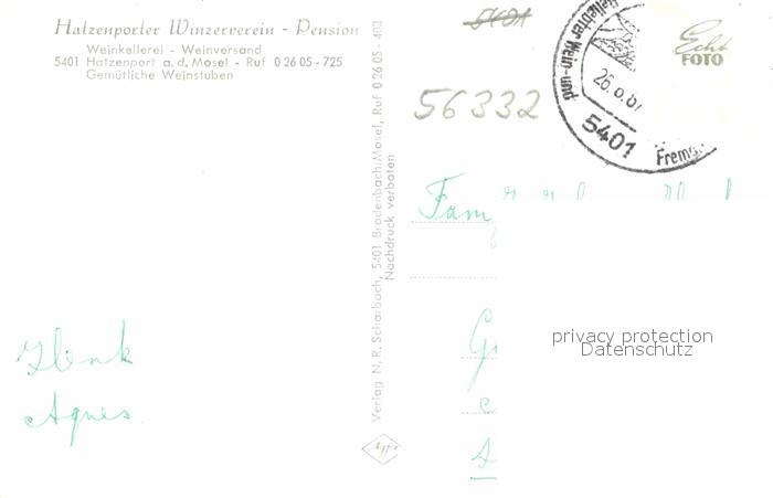 72637568 alte Postkarte Hatzenport Winzerverein Kirche Weinfass postalisch gelaufen Erhaltung siehe scans [KathaD79] KatCode: 11110007137208