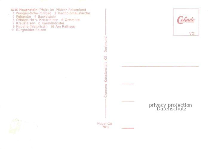 74153754 Hauenstein Pfalz Freibad Kirche Felsentor Felsformationen Ortsansichten Karmelkloster Kapelle Rathaus postalisch nicht gelaufen Erhaltung siehe scans [FriedD77] KatCode: 11110007340014