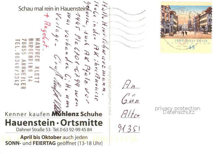73041885 alte Postkarte Hauenstein Pfalz Freizeit am Paddelweiher Muehlenz Schuhe postalisch gelaufen Erhaltung siehe scans [WerneD78] KatCode: 11110007340014