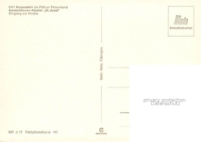 73836652 Hauenstein Pfalz Karmelitinnen Kloster St Josef Eingang zur Kirche postalisch nicht gelaufen Erhaltung siehe scans [WerneD78] KatCode: 11110007340014