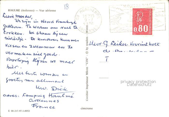 12482434 carte postale Haulme Fliegeraufnahme Camping postalisch gelaufen Erhaltung siehe scans KatCode: 11170008108217