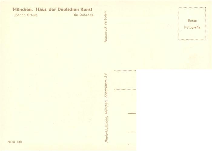 73948354 Haus der Deutschen Kunst Verlag HDK Nr. 410 Die Ruhende Johann Schult postalisch nicht gelaufen Erhaltung siehe scans [IrynaD87] KatCode: 22080000002400