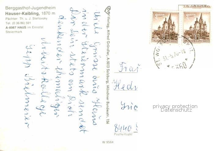 72654226 alte Postkarte Haus Ennstal Berggasthof Jugendheim Hauser Kaibling postalisch gelaufen Erhaltung siehe scans [WerneD78] KatCode: 11390