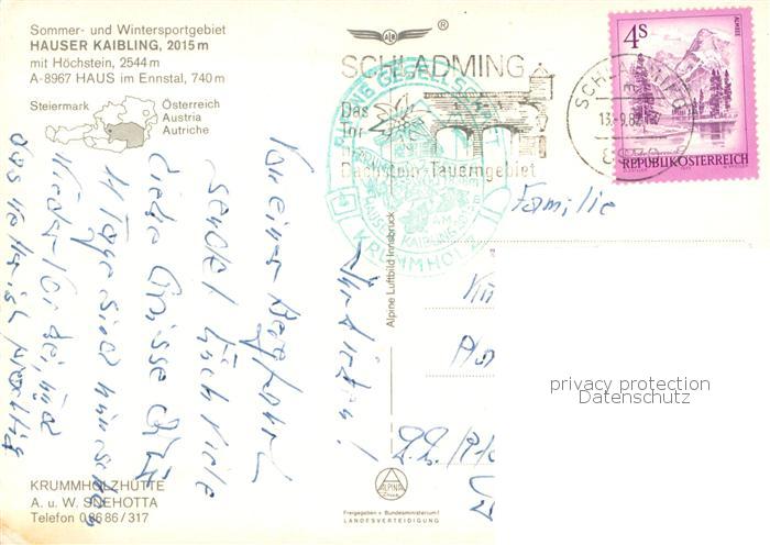 73754066 alte Postkarte Haus Ennstal Hauser Kaibling mit Hoechstein Fliegeraufnahme postalisch gelaufen Erhaltung siehe scans [WerneD78] KatCode: 11390