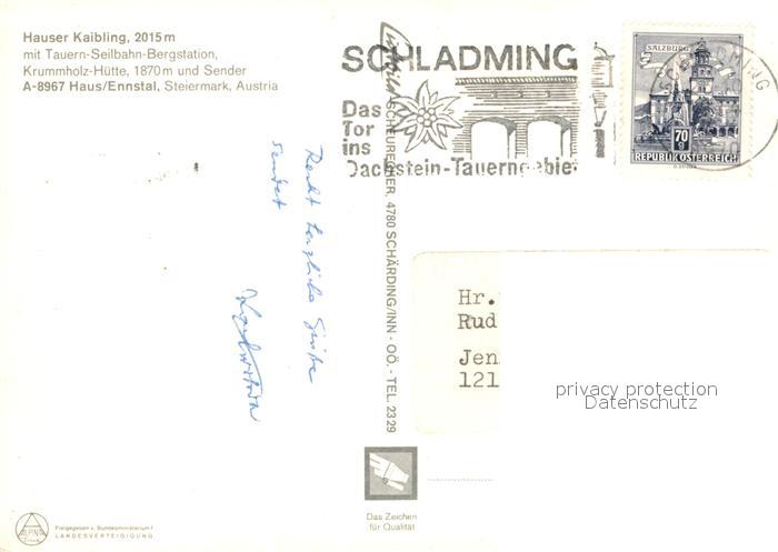 73161203 alte Postkarte Haus Ennstal Hauser Kaibling Tauern Seilbahn Bergstation Krummholzhuette Sender Fliegeraufnahme postalisch gelaufen Erhaltung siehe scans [FriedD77] KatCode: 11390