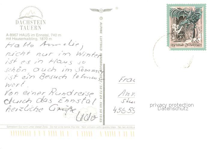 73340287 alte Postkarte Haus Ennstal mit Hauserkaibling Schladminger Tauern Fliegeraufnahme postalisch gelaufen Erhaltung siehe scans [FriedD77] KatCode: 11390
