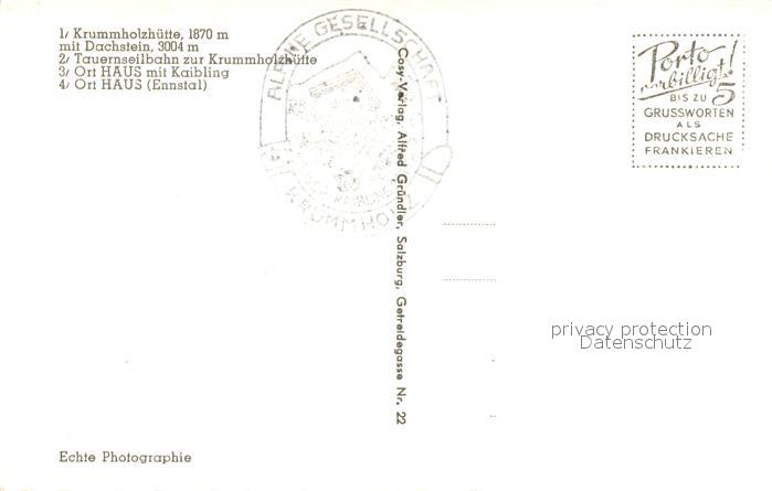 73712983 Haus Steiermark Krummholzhuette mit Dachstein Tauernseilbahn Ortsansicht mit Kirche Kaibling Panorama Ennstal postalisch nicht gelaufen Erhaltung siehe scans [FriedD77] KatCode: 11390222061217