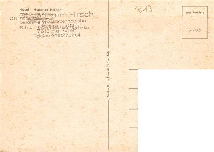 73928740 Hausach Hotel Gasthof Hirsch postalisch nicht gelaufen Erhaltung siehe scans [FriedD77] KatCode: 11110008317041