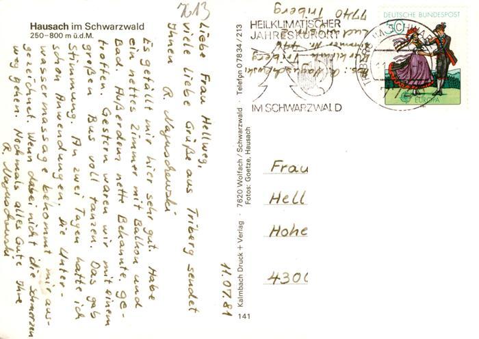 73928743 alte Postkarte Hausach Orts und Teilansichten Schwimmbad Strasse Schwarzwaldhaus postalisch gelaufen Erhaltung siehe scans [FriedD77] KatCode: 11110008317041